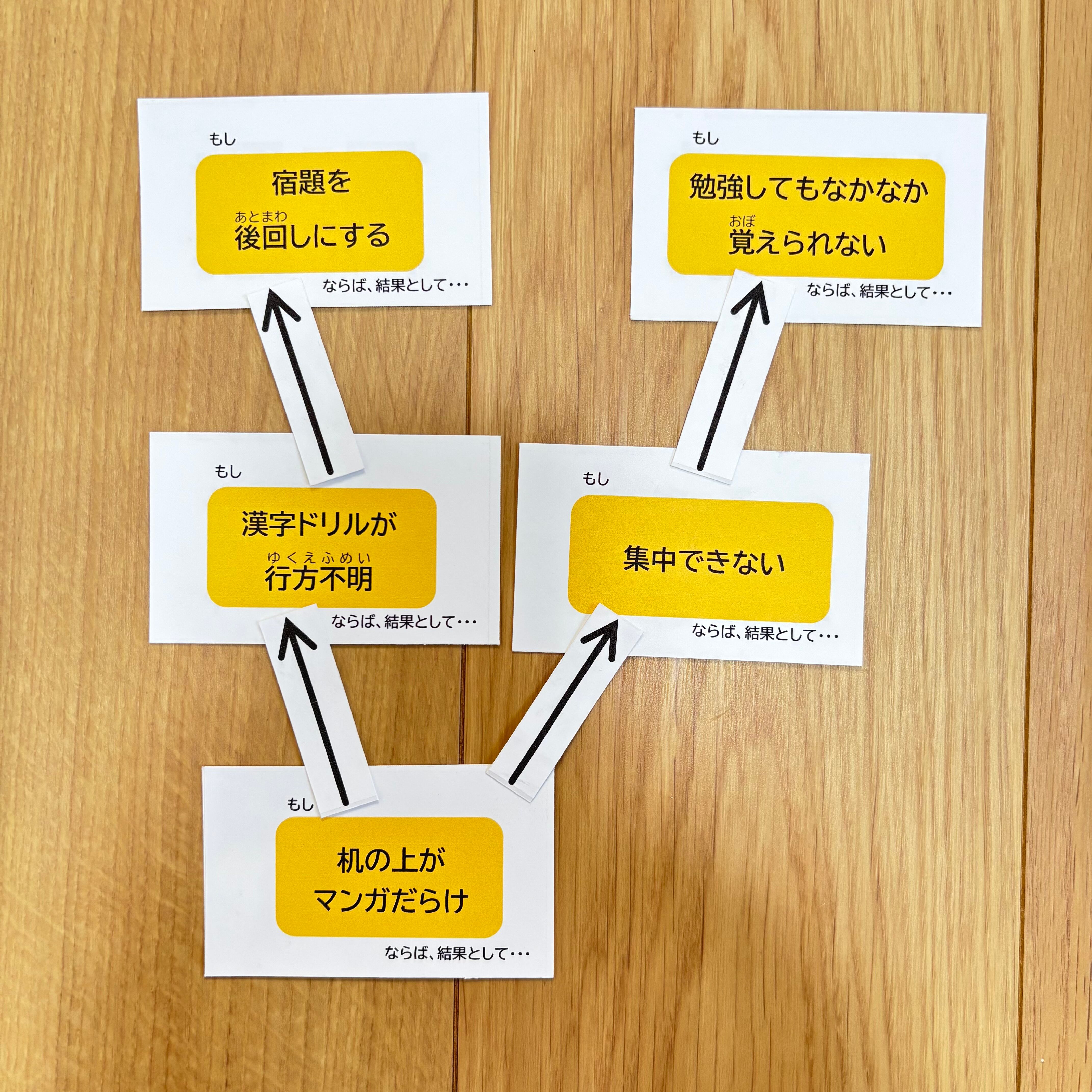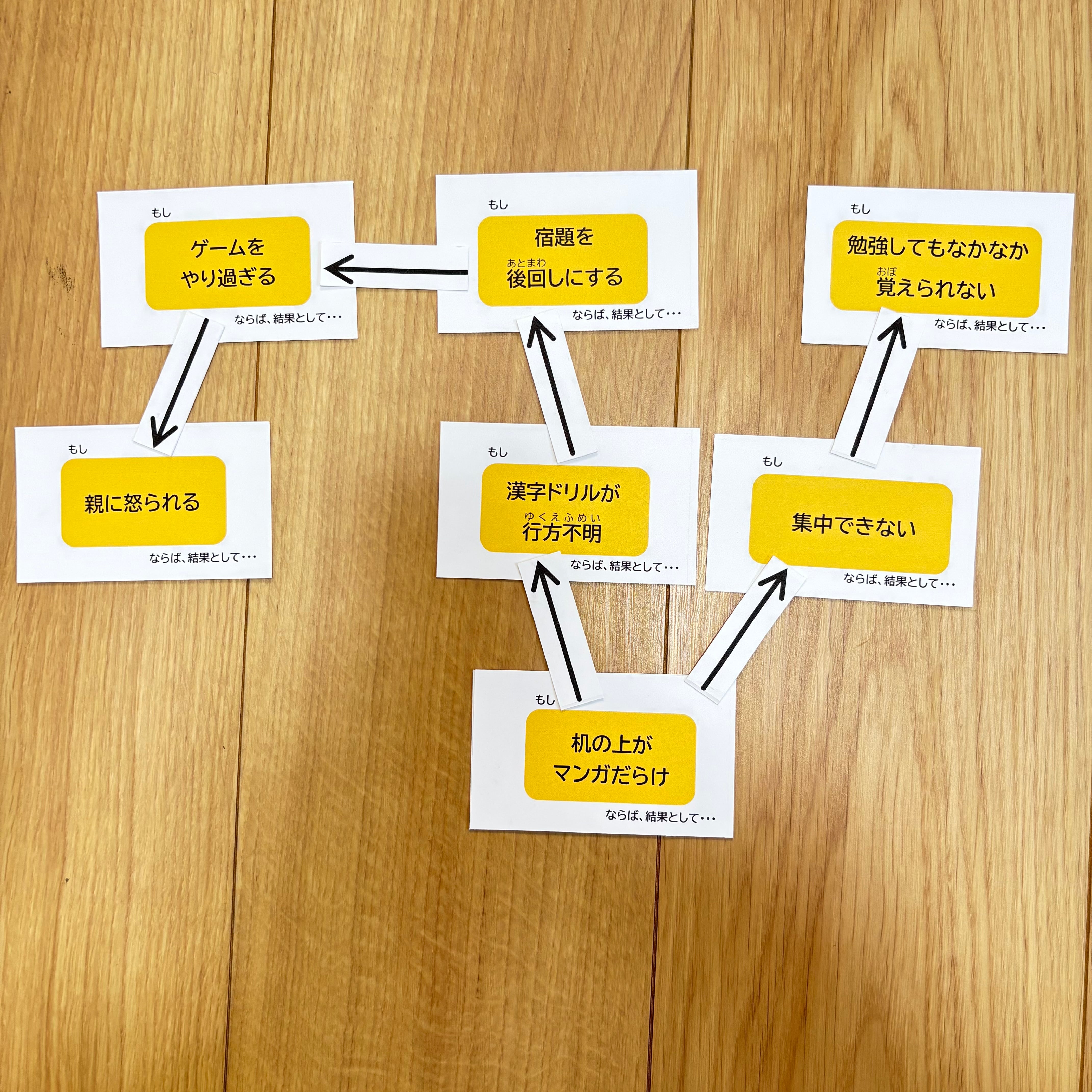 このゲームに使われている、物事の因果関係を矢印で繋いで表現する方法は、世界中のビジネスと教育の現場で広く使われている思考プロセスという手法です。