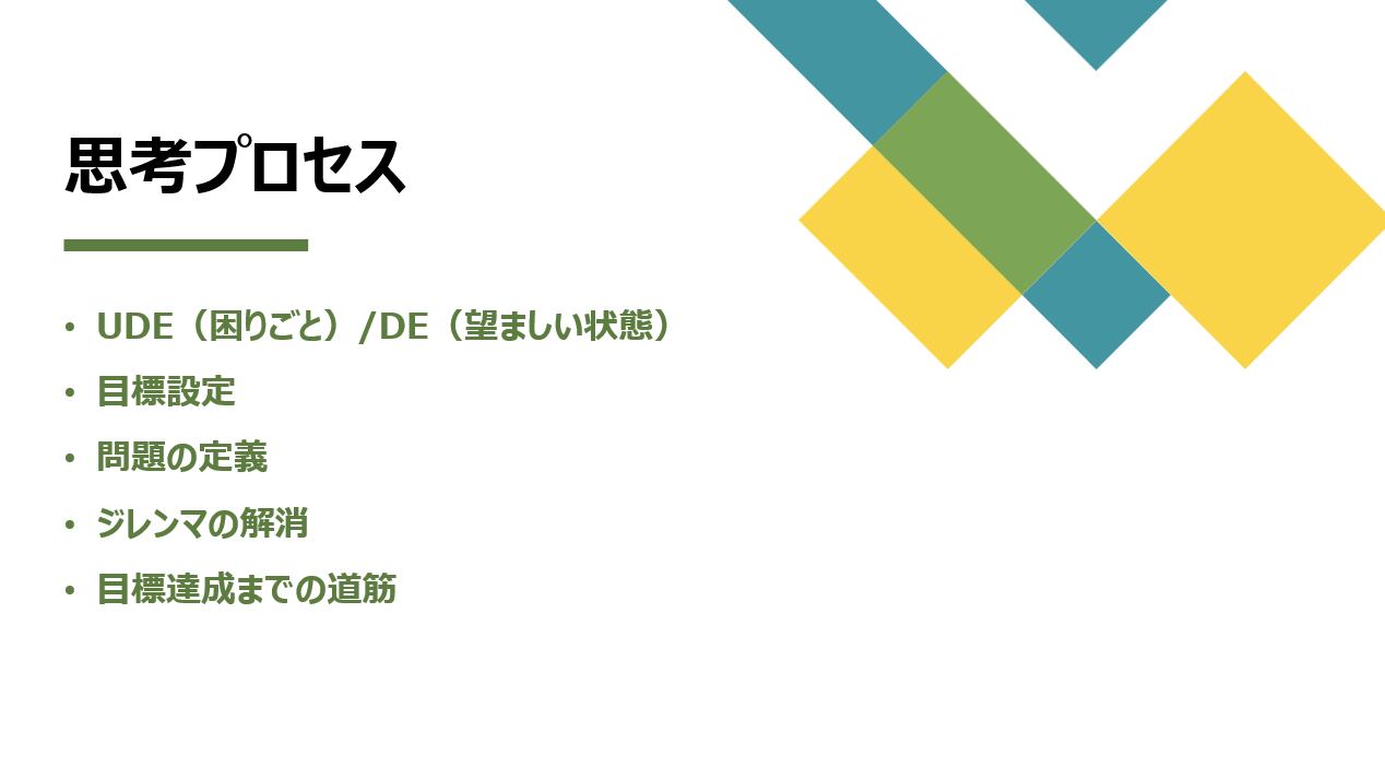起こせる明るい未来に向かい、論理的に考え前向きに進めるようになるのが思考プロセスです。