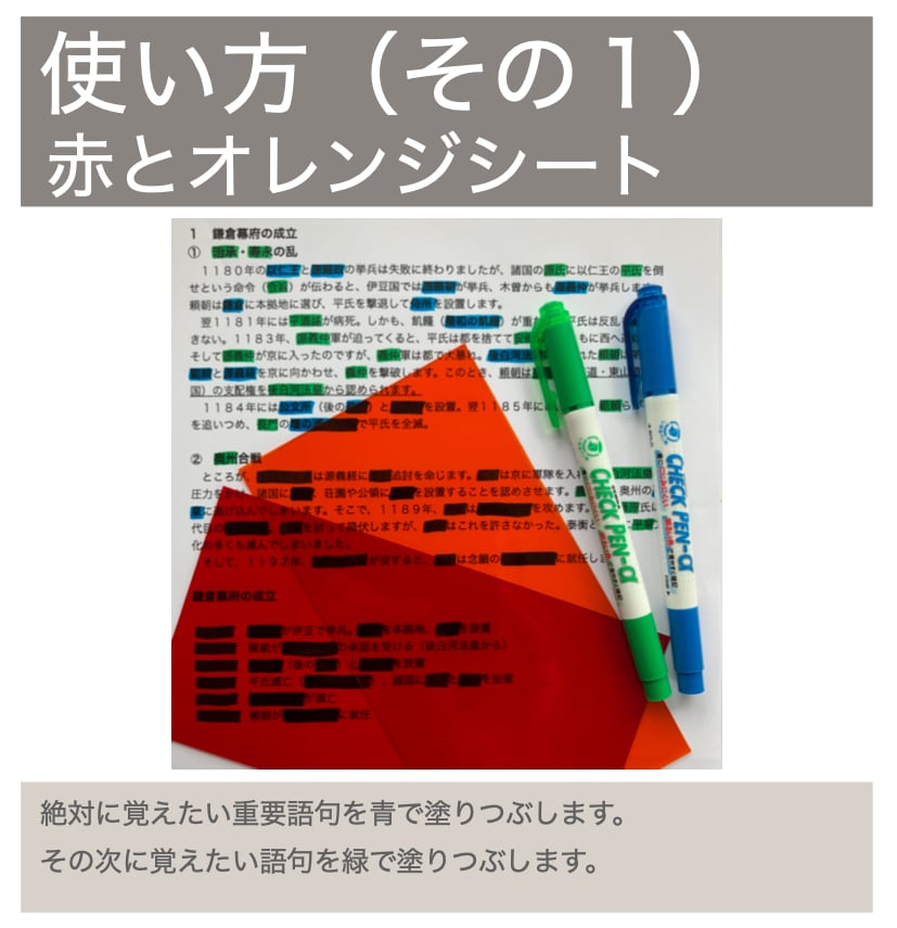 ”赤シート”と”オレンジシート"の使用方法(その1)です。