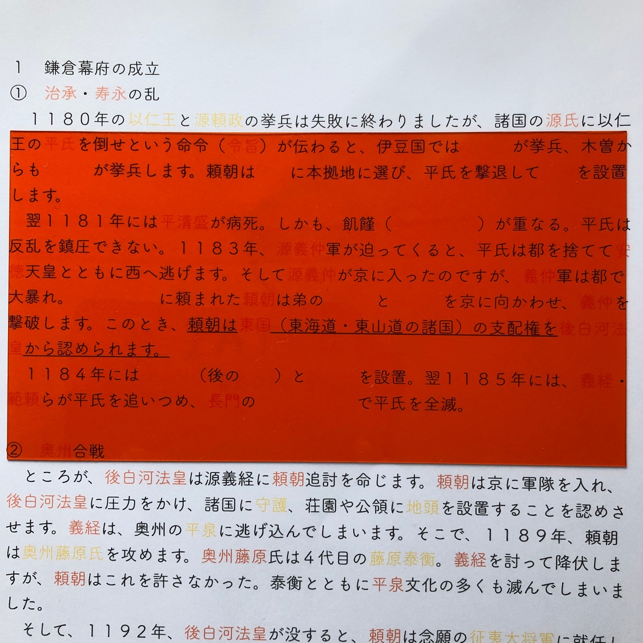 ”赤シート”と”オレンジシート"の使用方法(その2)です。