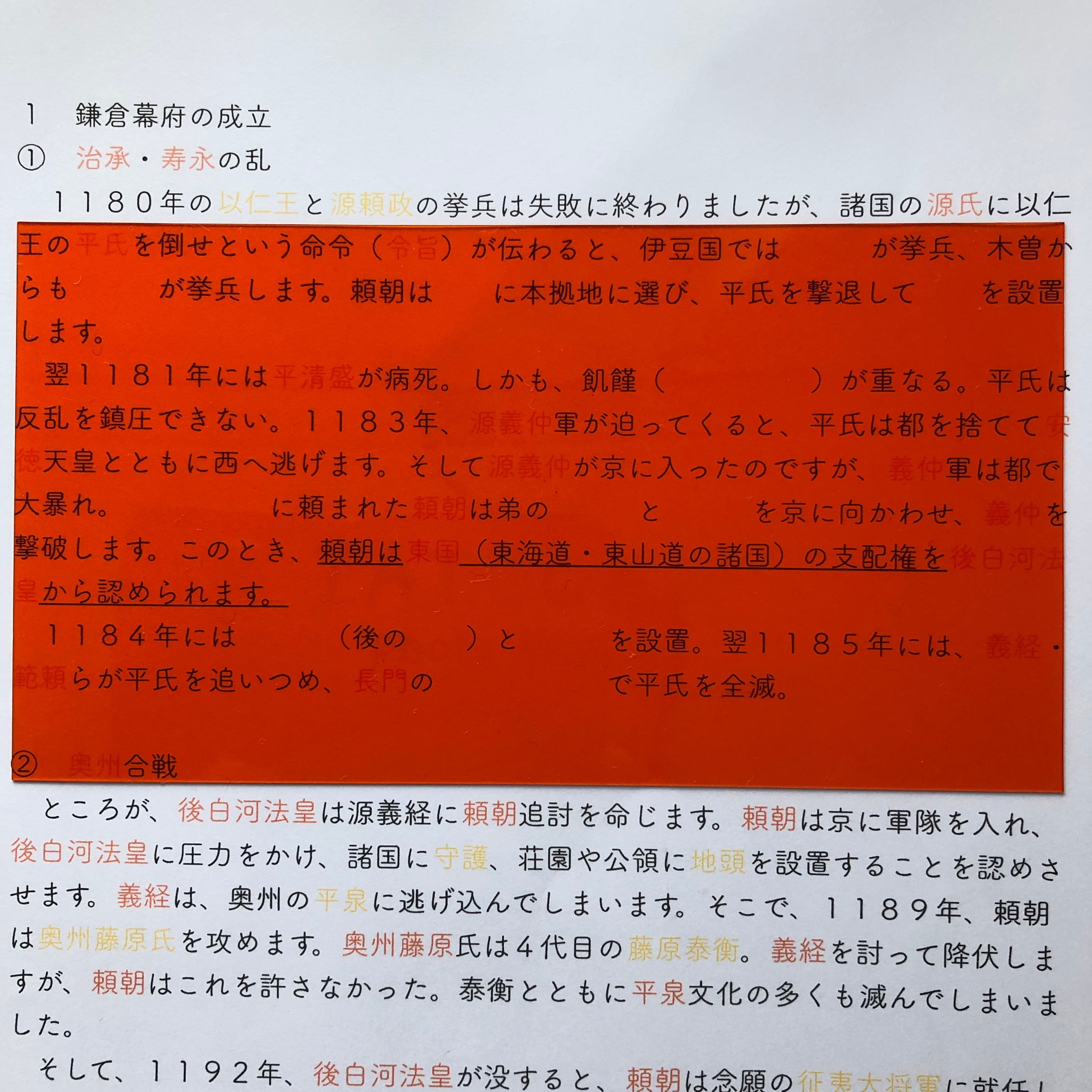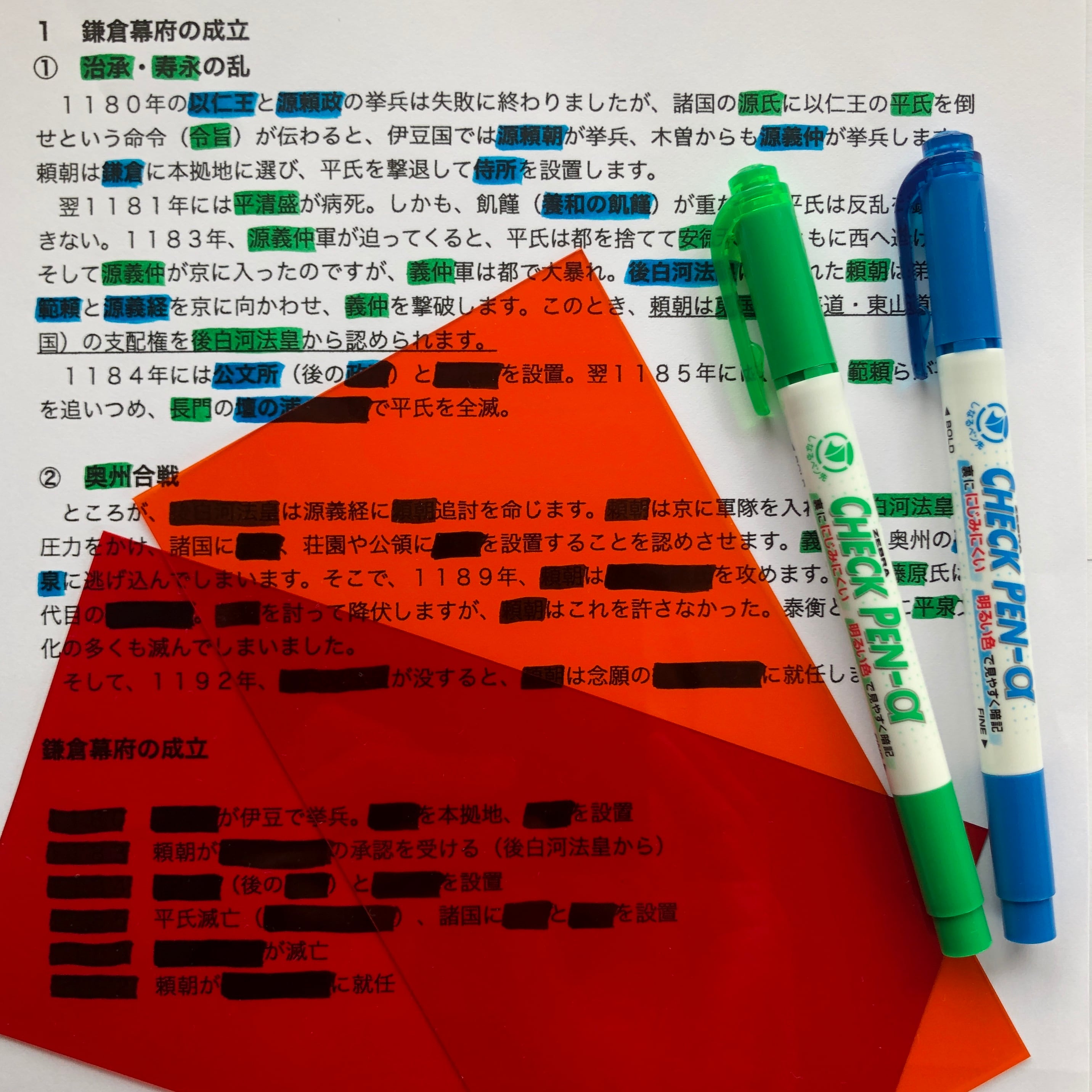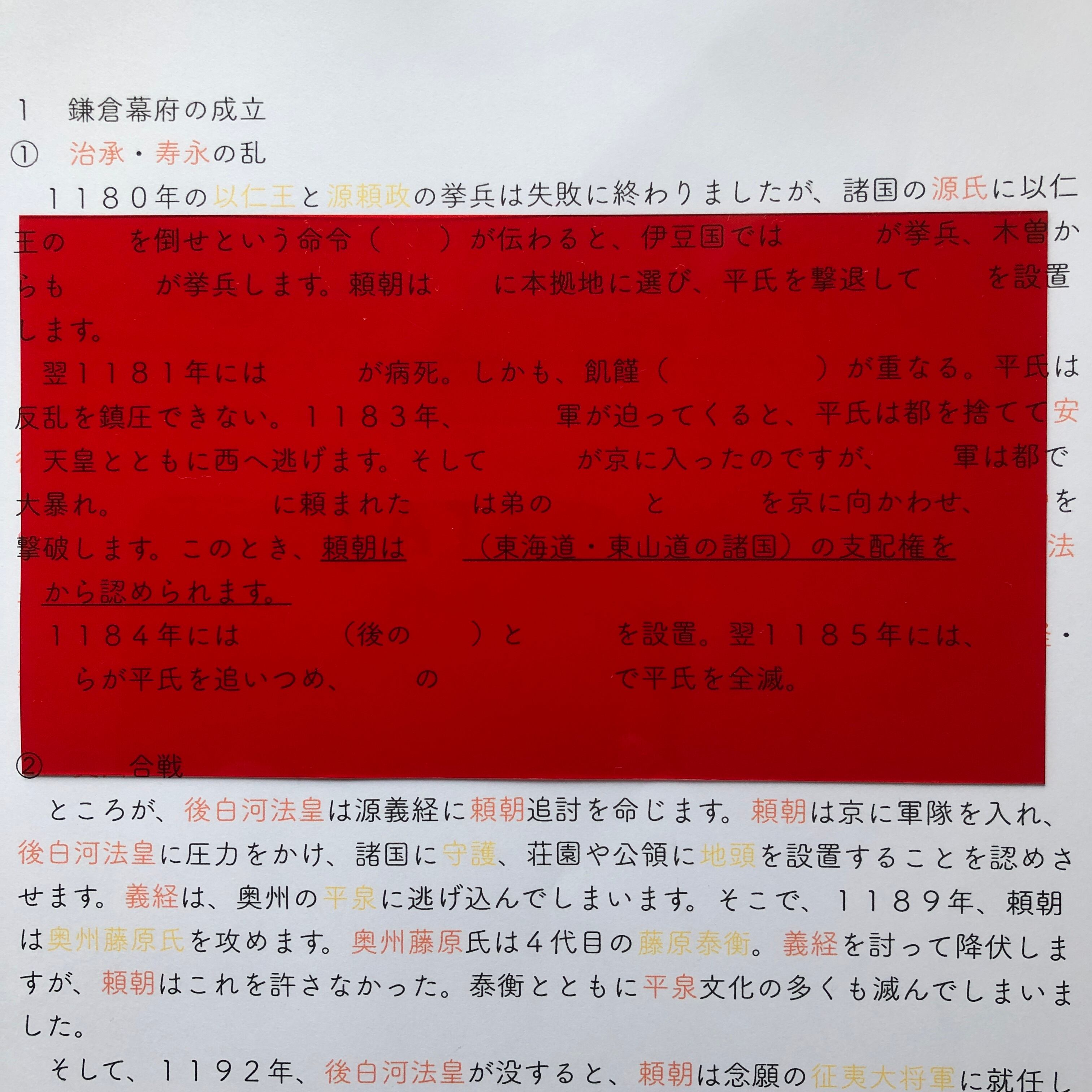 絶対に覚えたい重要語句を赤で塗りつぶします。